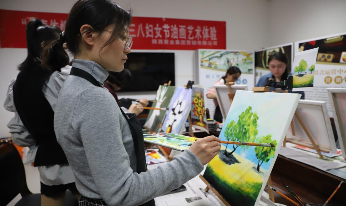 黃金營(yíng)銷公司 營(yíng)銷公司工會(huì)組織女職工開(kāi)展“丹青傳情·歡樂(lè)共享”三八婦女節(jié)油畫(huà)藝術(shù)體驗(yàn)活動(dòng)。大家在油畫(huà)老師的指導(dǎo)下進(jìn)行零基礎(chǔ)學(xué)習(xí)。活動(dòng)氣氛熱烈,調(diào)顏料、打線稿,大家互相欣賞、拍照留念。